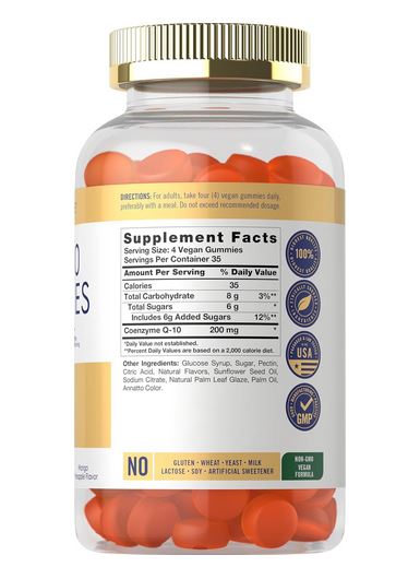 - VEGAN FORMULA: Vegan gummies provide 200 mg of CoQ-10 per serving in mango pineapple flavor