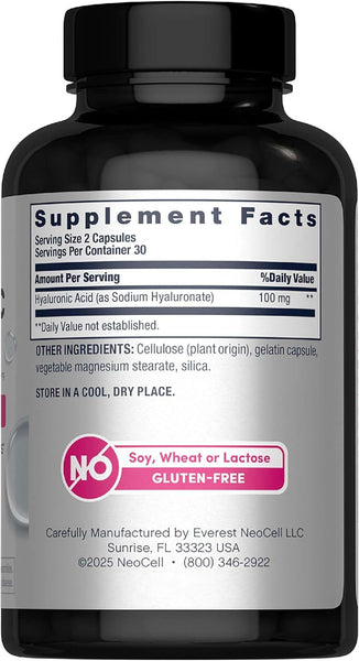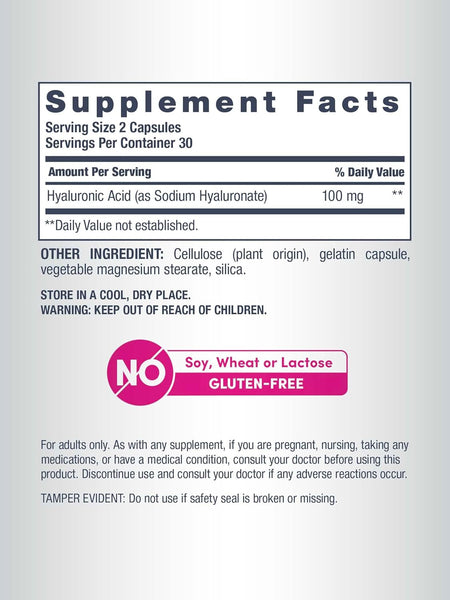 - 100 mg Hyaluronic Acid Per 2 Capsule Serving