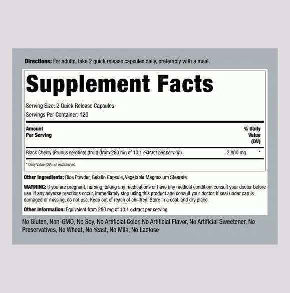 Black Cherry fruits are densely concentrated with divine nutrients. They contain naturally occurring antioxidants and flavonoids such as anthocyanins and quercetin, supporting a strong wellness routine. There is now an easier and more convenient way to incorporate Black Cherry into your wellness routine with Piping Rock capsules!