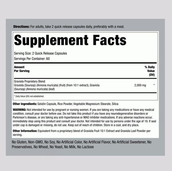 Equivalent from a proprietary blend of Graviola Fruit 10:1 Extract and Graviola Leaf Powder per serving..