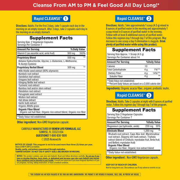 Kickstart your wellness from the inside out with Renew Life® Advanced Rapid Cleanse™.* Feel lighter and more energized with this simple, targeted cleanse designed to support your body’s natural waste elimination process. Whether you're starting on your wellness journey or looking for a quick cleanse, Advanced Rapid Cleanse™ is a one-week, three-part cleansing program ideal for those who experience occasional constipation.