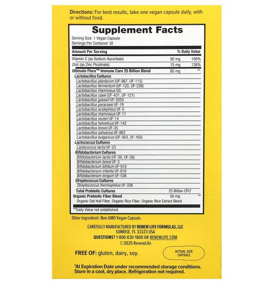 RENEW LIFE Ultimate Flora™ Immune Care Probiotic, 25 Billion CFU, 30 VEGAN Capsules